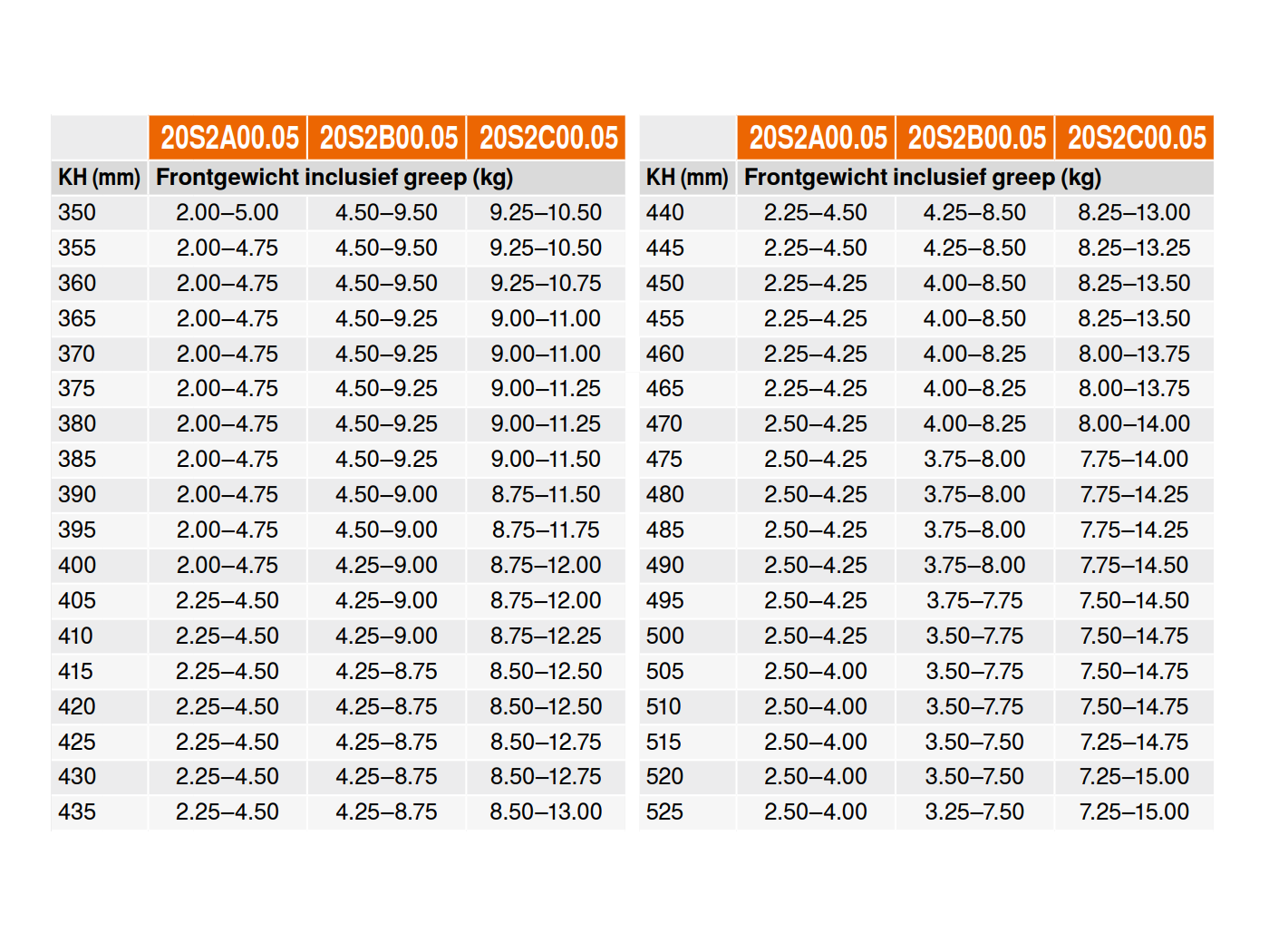 | Voor klephoogte: | 350 - 525 mm |