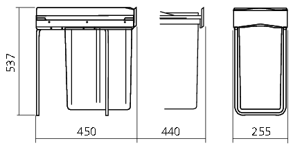 Dit afvalbak systeem is te gebruiken achter een draaideur. U kunt dit systeem eenvoudig op de bodem van de kast monteren. De volledig uittrekbare geleiders zorgen ervoor dat u de ruimte in de bak optimaal kunt benutten. Deze set bestaat uit 1 afvalemmer van 40 liter met daarboven een afneembare deksel waarop accessoires geplaatst kunnen worden.
